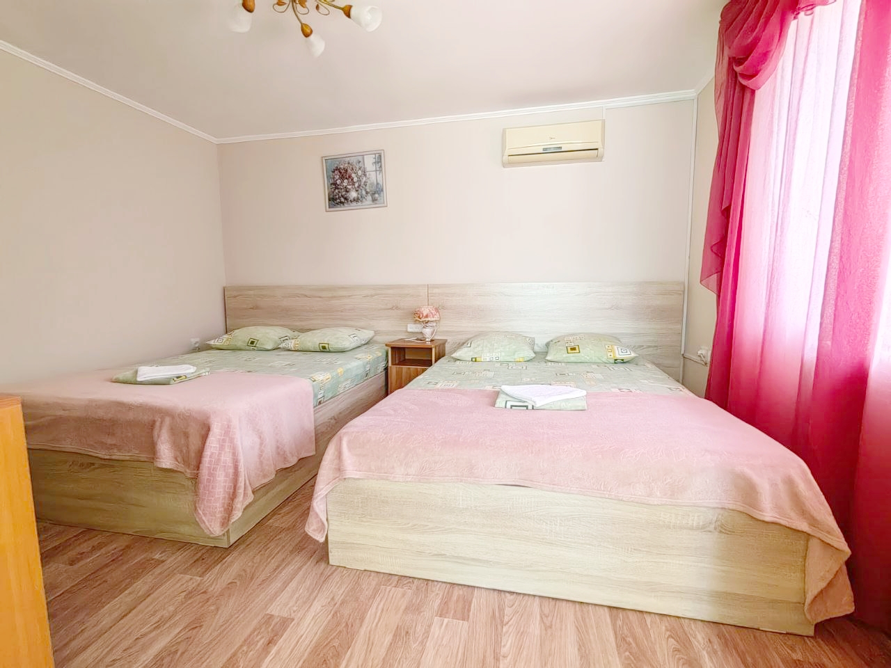 Площадь: 21 кв.м Вместимость: до 4 гостей (2 на основных местах + 2 на дополнительном месте) Номер категории «Двухместный с кухней» — Номер расположен в отдельном здании на 2 этаже. с отдельным входом. Состоит из жилой комнаты (спальни) и кухни-гостинной. Кухня оснащена всем необходимым для приготовления и приёма пищи. В спальне 4 спальных места двухспальная кровать и раскладной диван. Номер расположен в отдельном здании на 2 этаже. с отдельным входом. Состоит из жилой комнаты (спальни) и кухни-гостинной. Кухня оснащена всем необходимым для приготовления и приёма пищи. В спальне 4 спальных места двухспальная кровать и раскладной диван.