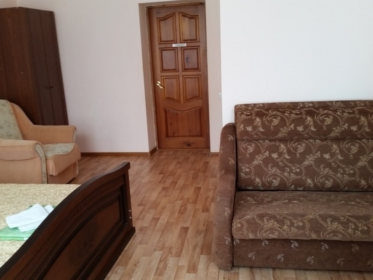 Площадь: 21 кв.м Вместимость: до 5 гостей (5 на основных местах ) Номер категории «Полулюкс 5-ти местный» — Однокомнатный пятиместный номер расположен в основном здании. Подходит для проживания пяти гостей. Имеет всё необходимое для комфортного отдыха: двухспальная кровать, односпальная кровать или раскладной диван, раскладное кресло, кондиционер, холодильник, телевизор, санузел, душ. Однокомнатный пятиместный номер расположен в основном здании. Подходит для проживания пяти гостей. Имеет всё необходимое для комфортного отдыха: двухспальная кровать, односпальная кровать или раскладной диван, раскладное кресло, кондиционер, холодильник, телевизор, санузел, душ.